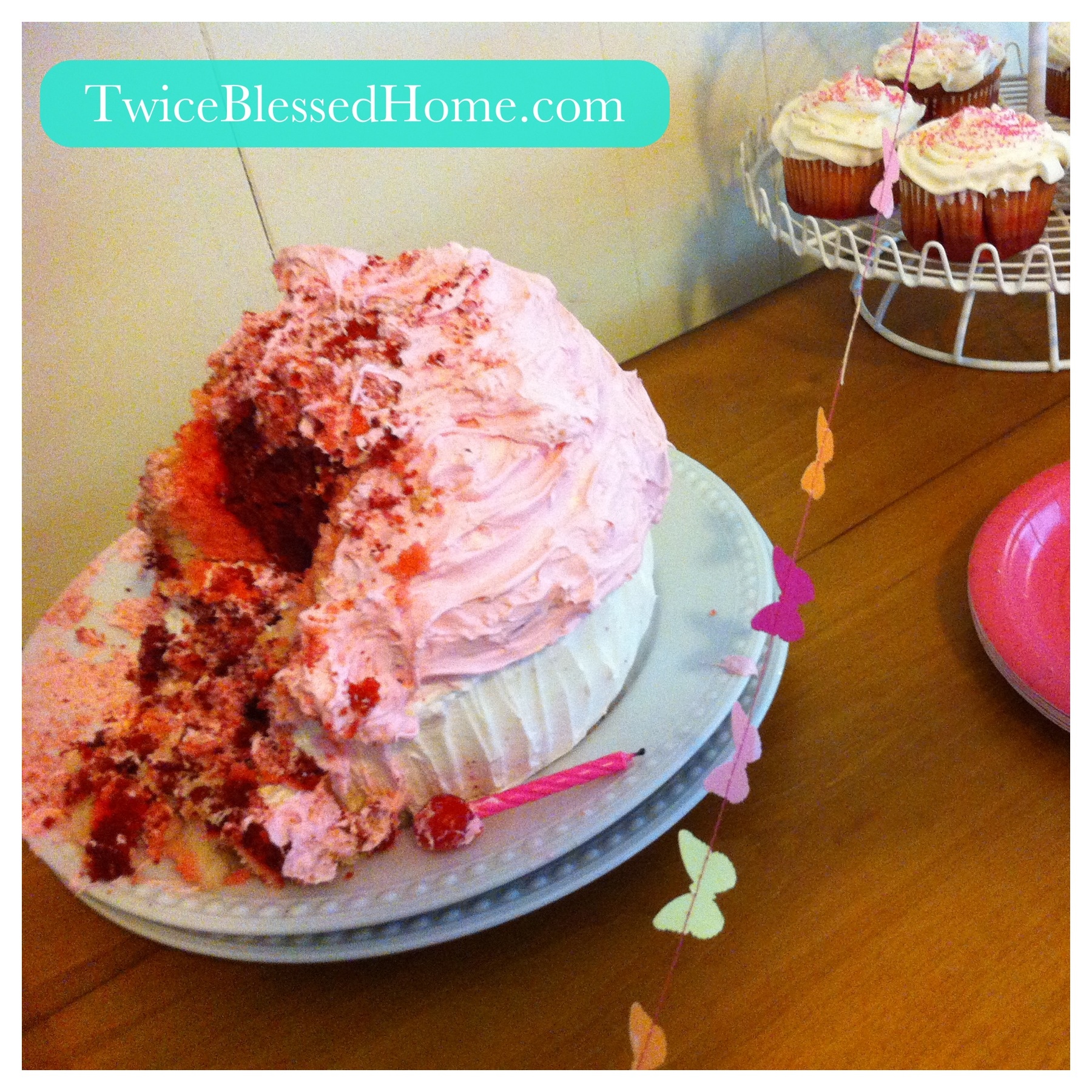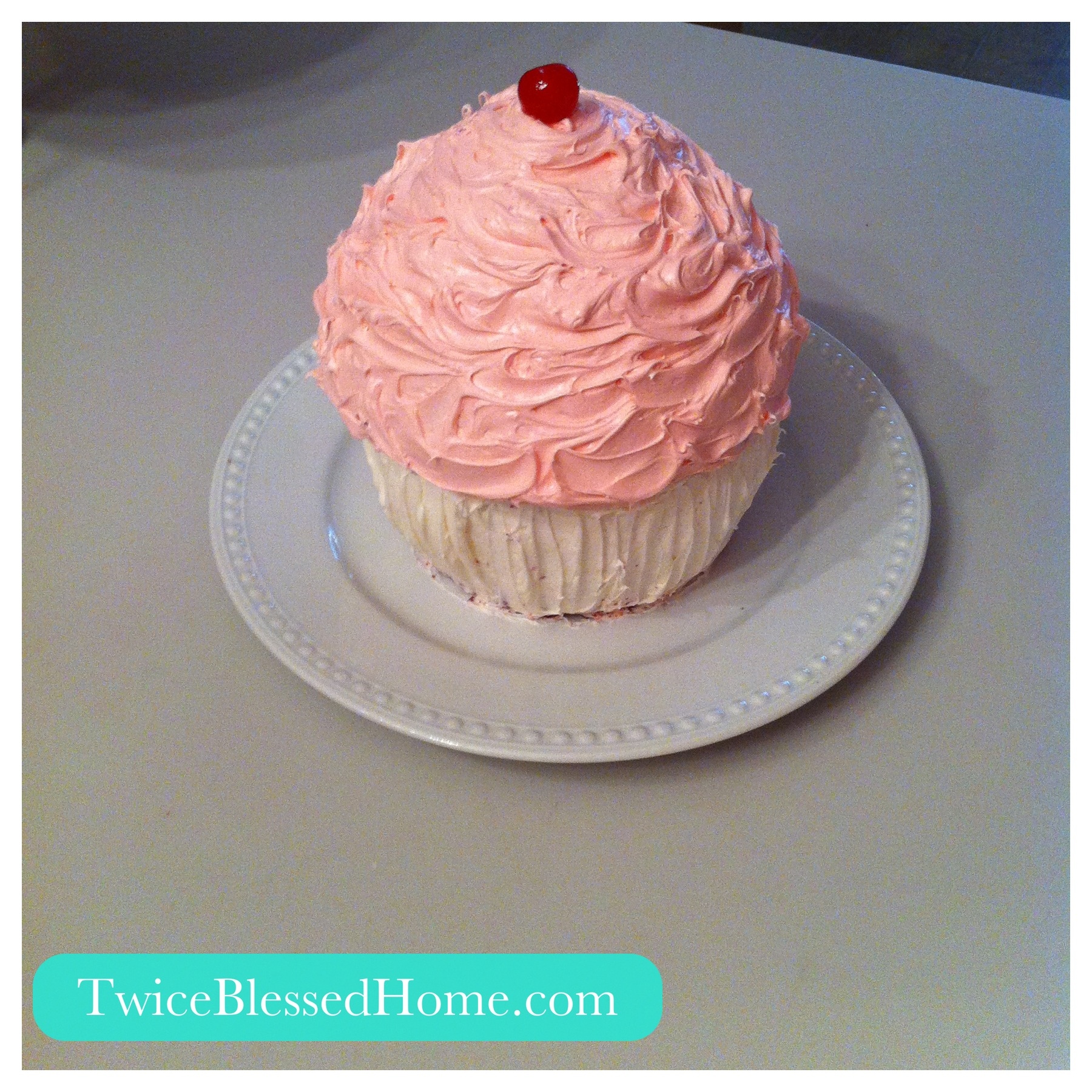 Bake, frost, and a cherry later you have one giant pink cupcake!