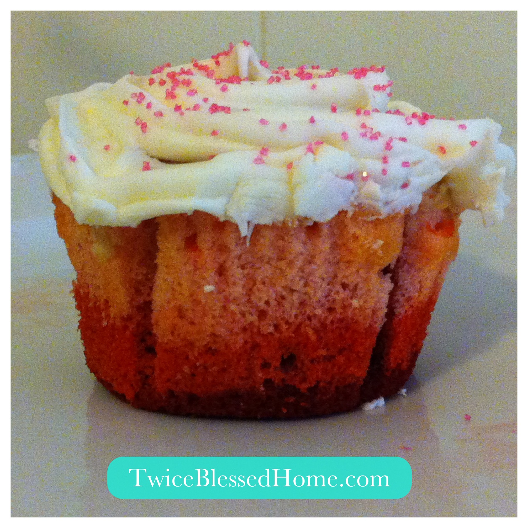 Bake, frost, sprinkle and Voila! A pretty in pink cupcake that tastes lovely.