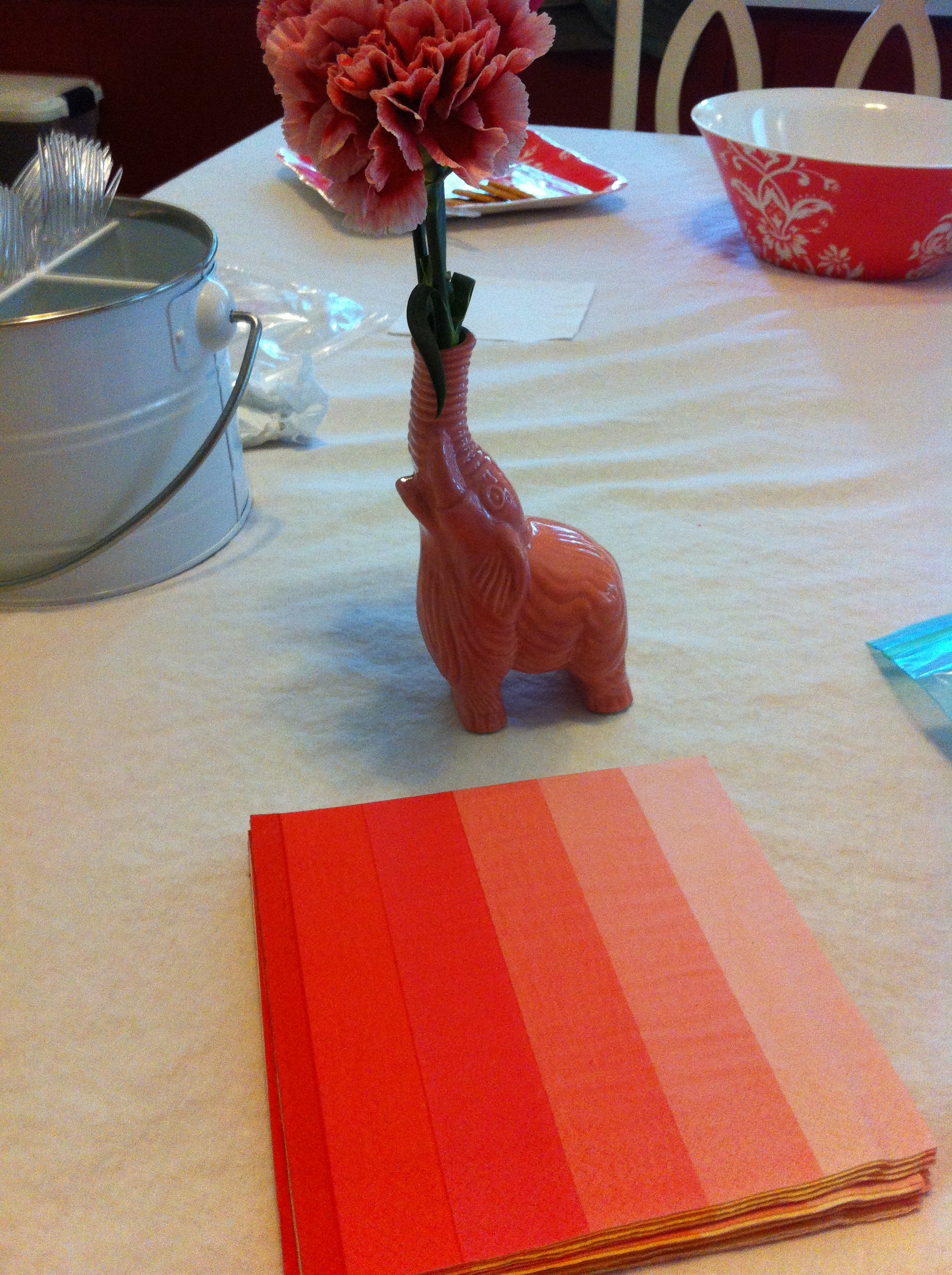 A dear friend of mine gave me that sweet elephant. And I found ombre pink napkins at Target. Score!