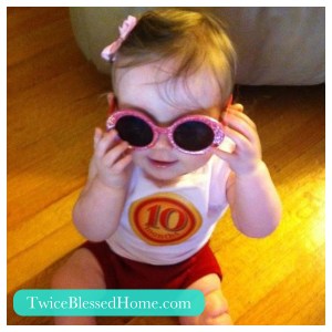 I’ve been taking pictures of my daughter every month since birth. I put a Picky Sticky sticker on her that says her age before I take the pic.