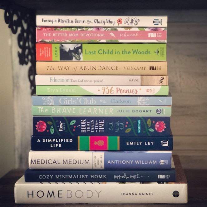 The books listed or pictured below are not book recommendations. I simply wanted to share the reading journey I’ve been on since becoming a mother and home educator. I’ll admit, I am a sucker for a pretty book and then dig in and realize you really can’t judge a book by it’s cover. Some titles I’ve loved. Others I did not. Most of these have been very helpful. And some the Holy Spirit has asked me to close. My word for 2019 is discernment. Does this line up with his word? And God has been answering my prayers a lot in this area! He has lead me to words that are true and beautiful, words that reveal or protect, that heal or give life… and away from words that are stumbling blocks in my faith. Have you experienced this? However, I have found this to be true: every book took bravery to write and gives us all a chance to peek inside someone else’s story… and pray for the author whose words are reaching many hearts.
