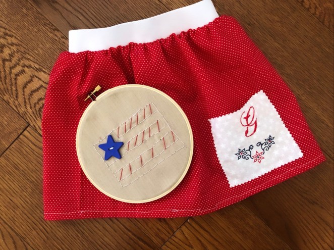 During the American Girl Sewing Camp, each girl made a Fourth of July Sampler. They all seemed to love this project and I was very impressed by their natural ability at hand sewing! Here’s what we did: