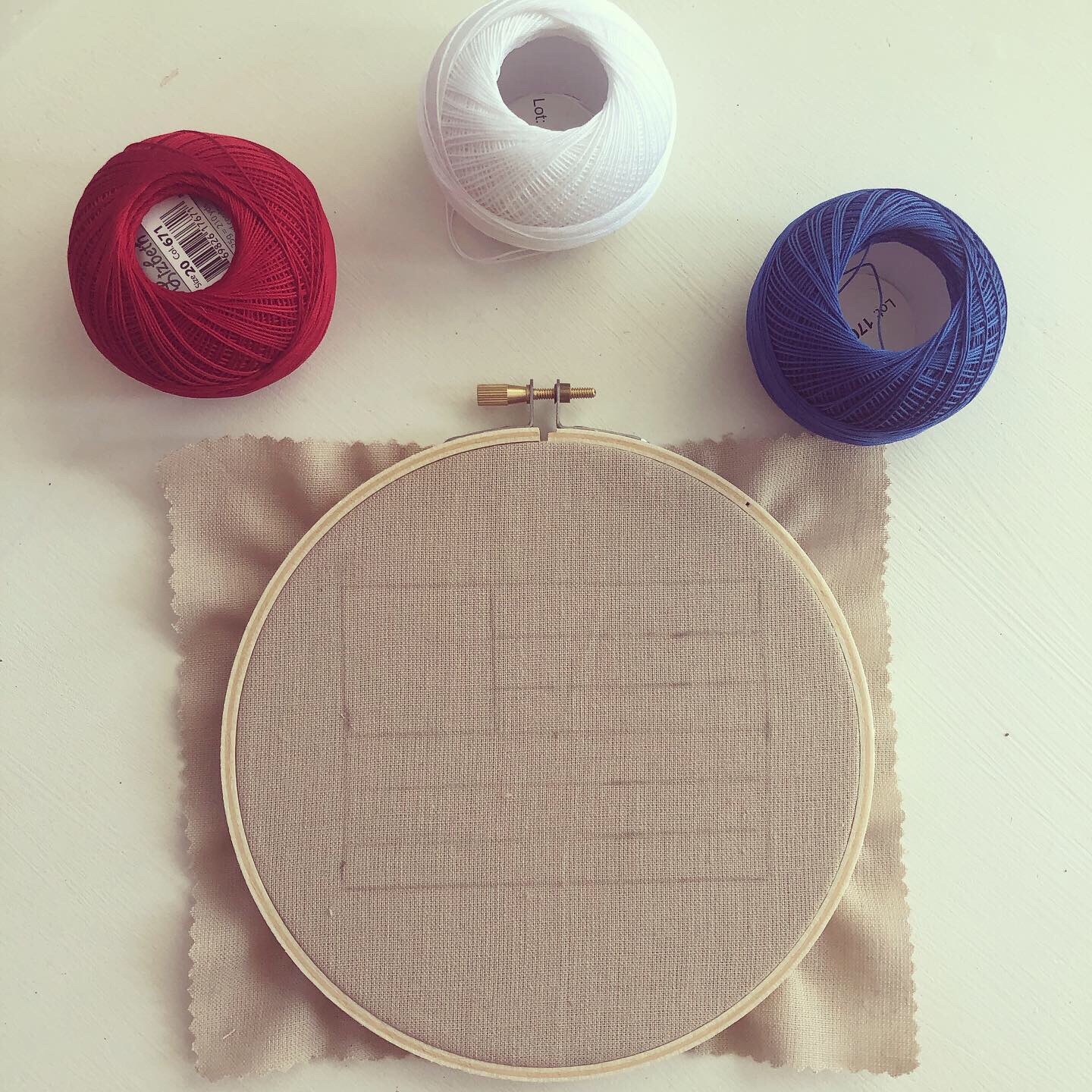You will need red, white, and blue embroidery floss! I used about 120″ of white, 36″ of red, and 20″ of blue. I found all of my supplies at Hobby Lobby.
