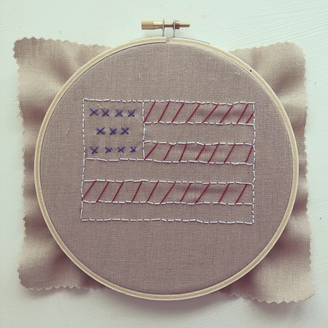 The last thing to do is the stars! I cross stitched 13 blue “stars” in the corner square.
