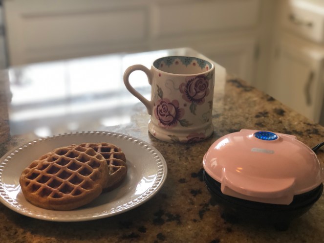 This little waffle maker heats up very fast! And can be used for grilled cheese, eggs, lots of things! We love it so much, I’m looking to get a 2nd one so more little hands can help… and get served quicker! 😉