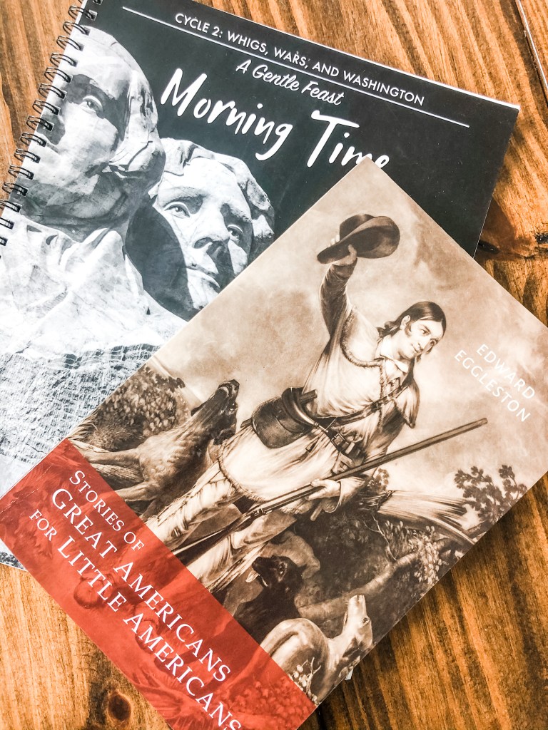 We started with AGF Cycle 1 last year. This year we will finish Cycle 1, then move to Cycle 2 where we will spend most of our year, and finish with a little Cycle 3 at the end. The AGF Cycles are really meant to be used 1 per year. But we are a little different in that we will use more than one morning time packet. The reason we do this is because our Co-Op uses Claritas for World History and is studying Cycle 3: Early Modern (1550s-1850s). So I pull a little bit from the first three AGF cycles’ booklists to sync with our Co-Op’s time line. It actually blends beautifully. I will probably hang two timelines in our home so my children can see where American History (in AGF) syncs up with World events (in Claritas). I’m sorry if that is a little confusing. I’m sure there are other homeschoolers who make things a little harder on ourselves by blending curriculums too. 😉 But it really is beautiful when it all comes together. If anyone uses Story of the World, it blends well with Claritas too since they both take 4 years instead of 3.